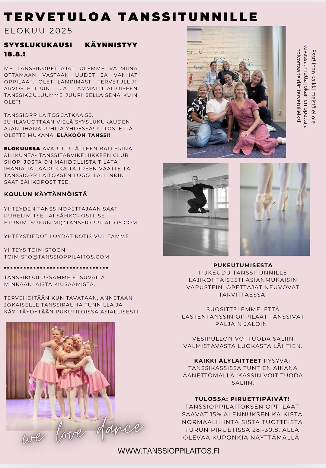 Vuosi 2025 on Tanssioppilaitoksen toiminnan 50 v. juhlavuosi.