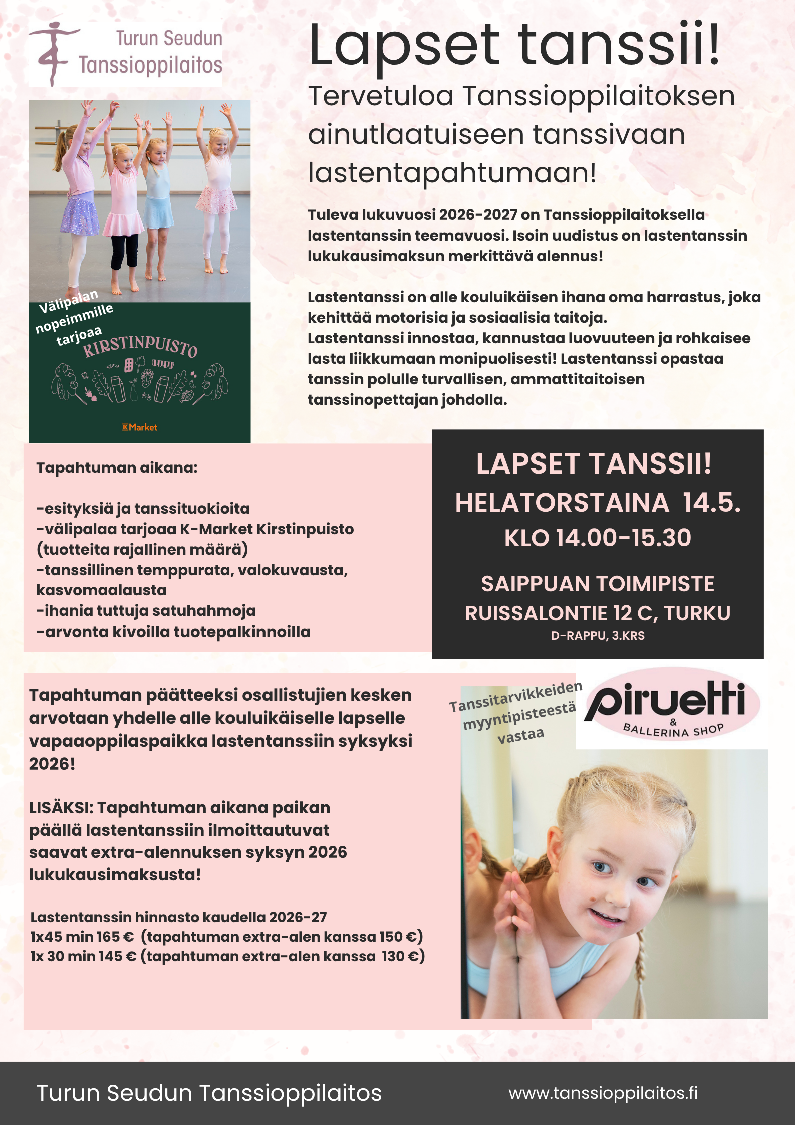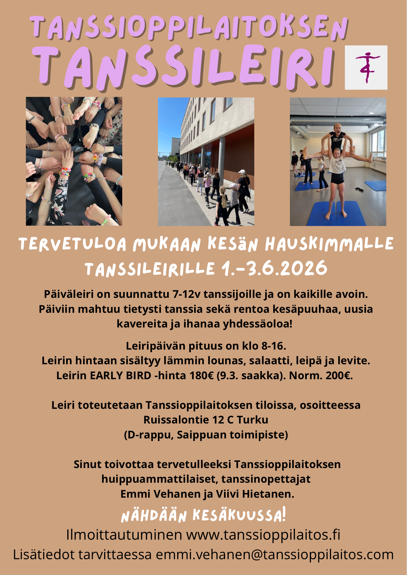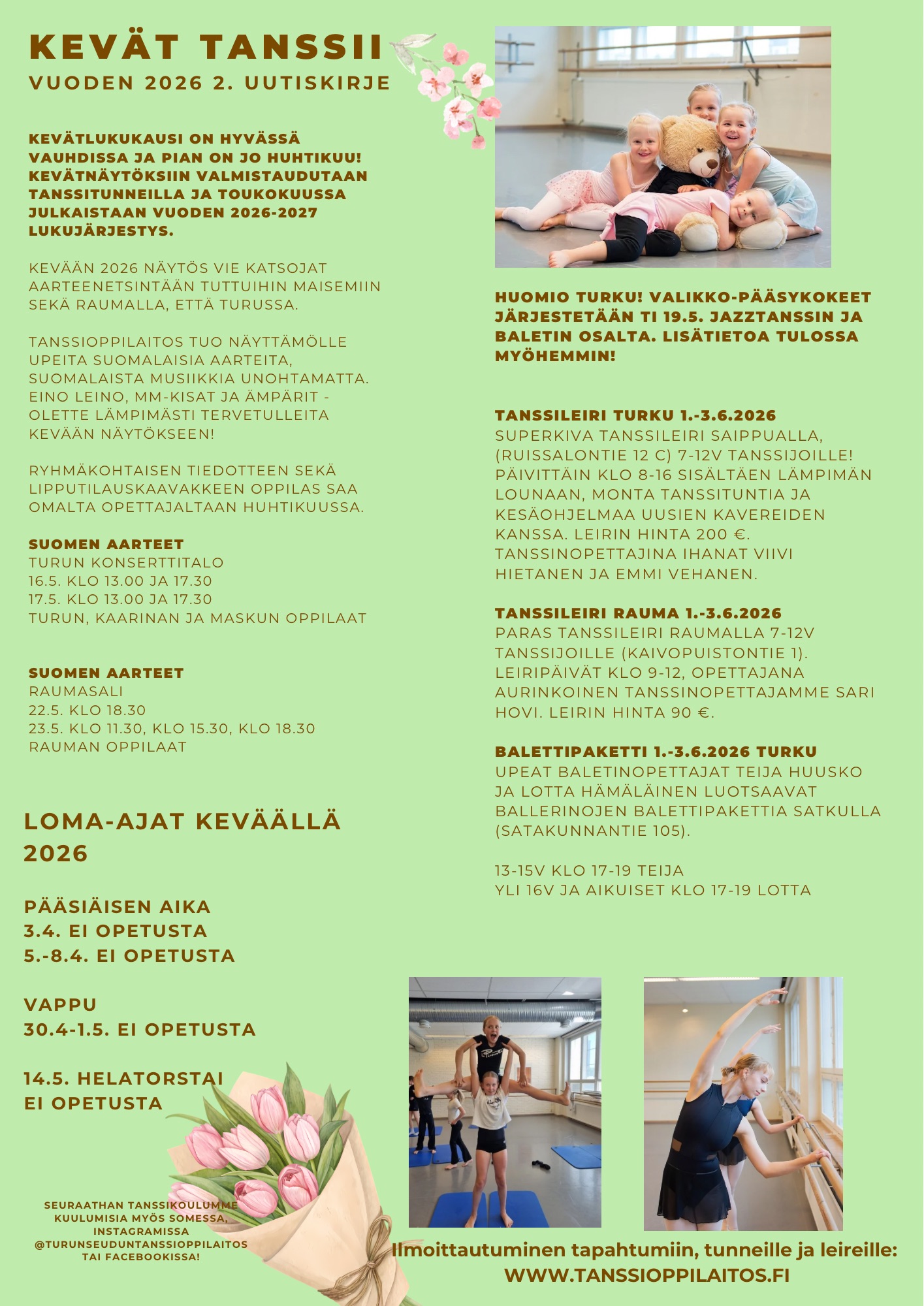 Vuosi 2025 oli Tanssioppilaitoksen toiminnan 50 v. juhlavuosi. Nyt jatkamme kohti seuraavaa vuosikymmentä! Olethan sinäkin osana tanssitaivaltamme!