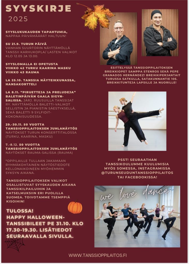 Läsåret 2024–25 inleder Tanssioppilaitos 50-årsjubileumsår som är fyllt av evenemang.